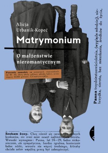 "Matrymonium" to barwny opis kolejnych etapów związku: od poszukiwań partnera za pomocą anonsów aż po małżeństwo, które zapewniało kobiecie bezpieczeństwo finansowe oraz złudzenie życiowego sukcesu. Czy jednak biznes małżeński naprawdę był najlepszym z rozwiązań? Korzystając z oryginalnych świadectw epoki – artykułów prasowych, pamiętników, powieści i poradników – autorka przybliża system prawno-społeczny panujący na aż do dwudziestolecia międzywojennego. Zza ciasnych ram tego systemu wyłania się pasjonujący obraz kobiet, które próbowały kształtować własne życie: miłosne, rodzinne i finansowe.