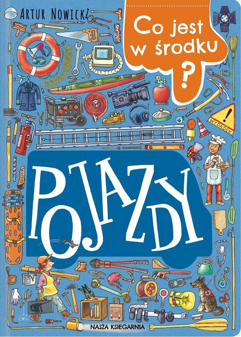 Czy zastanawialiście się kiedyś, ile rzeczy kryją w sobie różne pojazdy, na przykład karetka, wóz reporterski, ponton ratowniczy, pomoc drogowa czy samolot? Ta wypełniona szczegółami książka obrazkowa prezentuje czternaście pojazdów oraz to, co można znaleźć w środku każdego z nich. Czy wiecie, że wóz strażacki przewozi kilka tysięcy litrów wody do gaszenia pożaru, radiowóz - kolczatkę, helikopter pogotowia górskiego - plecak lawinowy, a żaglówka - róg mgłowy? W śmieciarce znajdują się nie tylko śmieci odebrane ze śmietników, lecz także wiele sprzętów. Kiedy coś się zepsuje, można wezwać serwis domowy, w którym przewożonych jest bardzo dużo najróżniejszych narzędzi. Z kolei kamper to dom na kółkach - ile w nim rzeczy potrzebnych na kempingu! Ale na kółkach może być również księgarnia i restauracja. Do book trucka i food trucka trzeba wiele zabrać, aby sprzedawać książki czy przygotowywać i podawać jedzenie. Tę książkę można oglądać godzinami i cały czas odkrywać kolejne szczegóły.