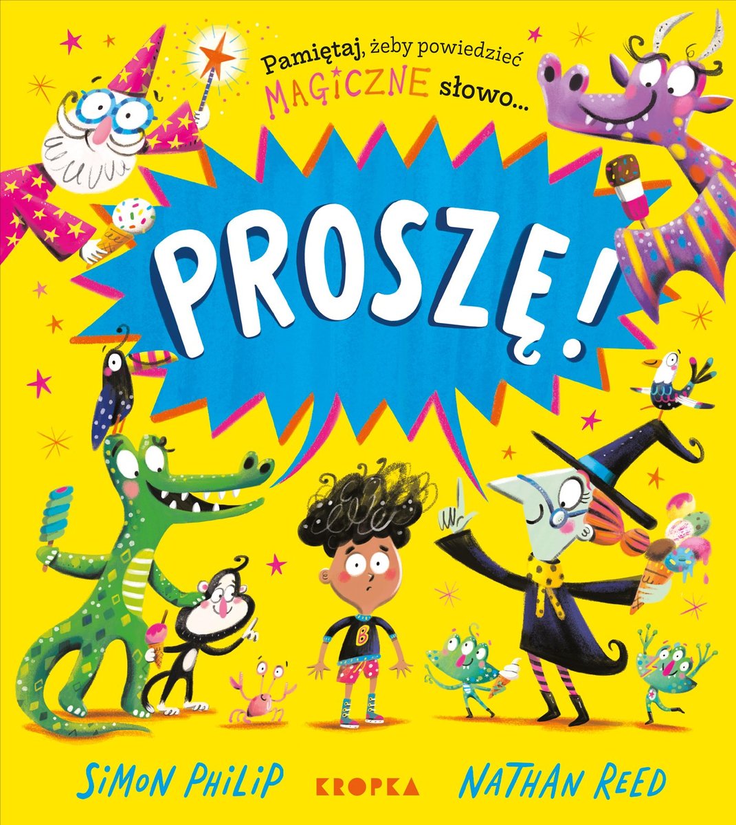 Proszę! / Simon Philip, Nathan Reed ; przekład Magdalena Jakuszew. - Wydanie pierwsze. - Warszawa : Kropka, 2025. - [26] strony : ilustracje kolorowe ; 29 cm.